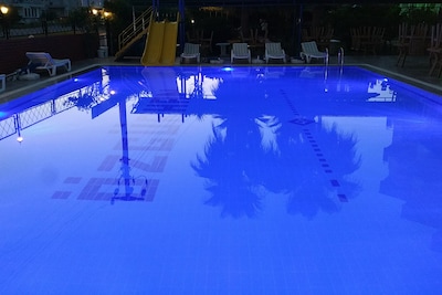 Otelimizde aç?k yüzme havuzu bulunmakta olup, misafirlerimiz burada serinleyerek keyifli vakit geçirebilirler. Tesisimiz, konuklar?m?za balkonlu oda seçeneklerini de sunarak, çevrenin güzelliklerinden daha fazla keyif almalar?n? sa?lar.
