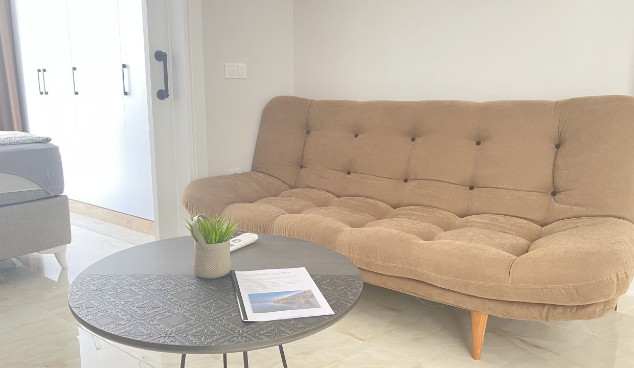 This apartment is a really unique living! A brand new 1+1, located in a really nice area, close to everything you need. Comfortable furnitures and well equipped kitchen. Free parking outside. In the common areas you also have pool with specialarea for children and sauna, that you can use for free. Very close to supermarkets, bazaar and other shops. This is a smaller apartment, but very well equipped and planned. There is one bed room with a double bed and storage. Then you have a kitchen/livingroom in open plan. There is also a bed sofa. And there is also a balcony showing the poolside/streetSmart-TV in livingroomBathroom with shower and washing machine Guests can use all apartment except one locked cabinet:) If you would like any special equipment, such as a desk, coffee maker or microwave, please ask! We solve most things if we can ?We provide toilet paper, washing-up liquid and laundry detergent to start with. When this is over, the guest can buy himself.We are happy to help with intermediate cleaning if the guest wishes this, for a feeWe also help with transfers