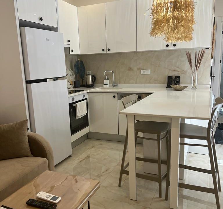 Here you live perfectly in a slightly smaller, but very nicely furnished apartment in the middle of Cleopatra! Completely newly built! Only 150 meters to the beach and close to everything you need, including our office. This is a smaller complex with a total of 9 apartments, featuring a shared pool, sauna, and jacuzzi. You can also order baby and/or beverage packages. The apartment consists of a bedroom with a double bed and an open-plan living room and kitchen. There is also a sofa bed and a fantastic large terrace where you can relax, and enjoy a cup of afternoon coffee. The bathroom has a shower. The apartment is equipped with a washing machine and dishwasher. It is well-equipped with everything you need, including good Wi-Fi. Free parking is available on the street outside. We always try to be flexible with check-in and check-out times if possible. NOTE: THE ELEVATOR ARE CURRENTLY UNAVAILABLE. You have access to all areas of the apartment except a locked cabinet. If you would like any special equipment, such as a desk, coffee maker, or microwave, please ask! We solve most things if we can. We provide toilet paper, washing-up liquid, and laundry detergent to start with. When these run out, guests can purchase their own. We are happy to help with intermediate cleaning if the guest wishes, for a small fee. We also help with transfers.
